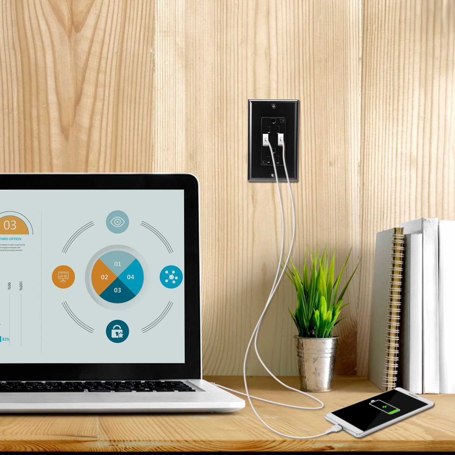 - Durable and Secure: Adopting flame-retardant PC and premium phosphor bronze material. our USB wall outlet supports overvoltage and overcurrent protection. durable and safe.